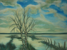 Mitternachtssonne 70 x 90 Mischtechnik auf Jute